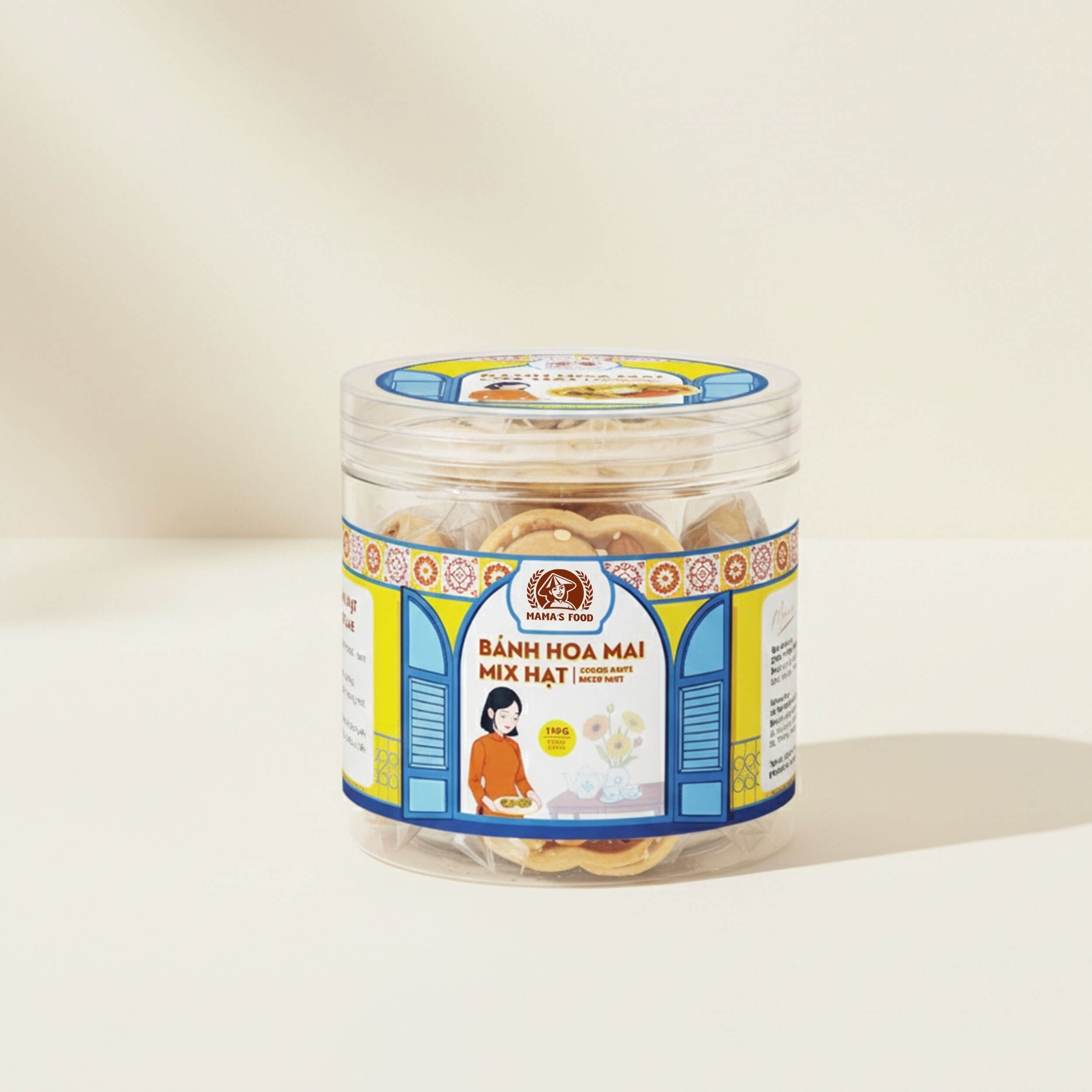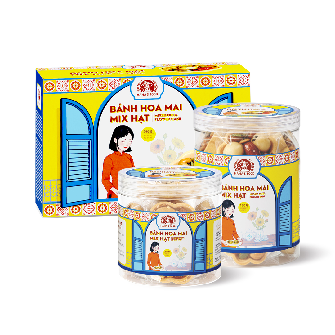 Bánh Hoa Mai Mix Hạt – món quà nhỏ gói trọn hương vị Tết Việt, mang theo lời chúc an lành và đoàn viên. Một chiếc bánh, một tách trà, và câu chuyện sum họp – đó chính là tinh thần mà Mamafood muốn gửi gắm trong từng sản phẩm.