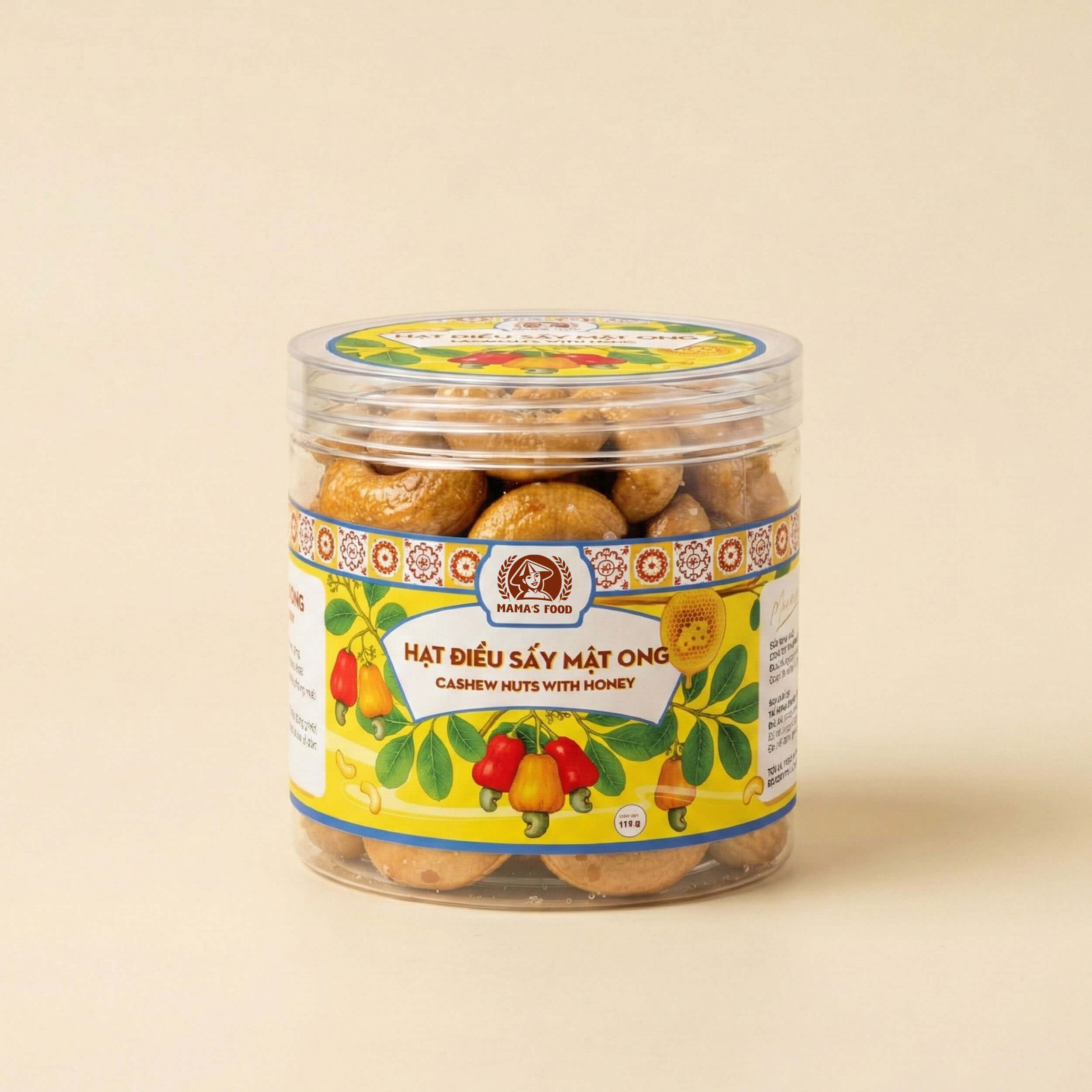 Hạt Điều Sấy Mật Ong Mamafood là sự kết hợp tinh tế giữa vị béo ngậy tự nhiên của hạt điều và hương ngọt thanh của mật ong nguyên chất. Mỗi hạt điều được sấy giòn đều, phủ lớp mật ong vàng óng, mang đến trải nghiệm vừa ngọt dịu, vừa bùi thơm, hấp dẫn ngay từ lần nếm đầu tiên. Đây là món ăn vặt lý tưởng cho những ai yêu thích hương vị nhẹ nhàng nhưng vẫn trọn vẹn dinh dưỡng.